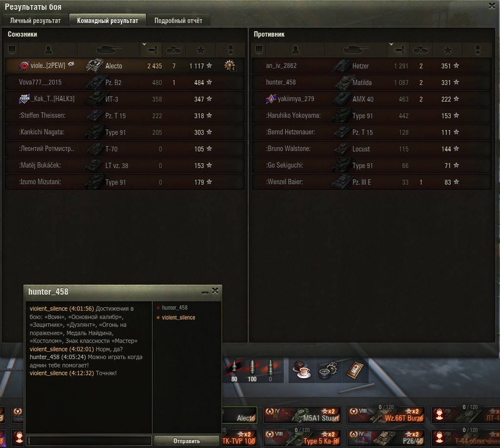 RenamedUser_26890209 Опубликовано: 26 июля, 2025 Игроки 66 публикаций 1 115 боёв Поделиться Опубликовано: 26 июля, 2025 26 июл 2025 - 08:20 пользователь KyponaTka_khv сказал:Может. Тут выше писали: каждый игрок находится под персональной подкруткой либо персональным угнетением.Дальше уже зависит от того, чья сейчас очередь побеждать. Если твоя, то ты остаёшься один против сотрудников лесты из подразделения "подкрутошная" и они тебе сливаются. А вообще всё решено до начала боя, на этапе загрузки и от игрока ничего не зависит. Ведь именно это пытаются доказать местные 44%-ные открученцы и страдальцы с полтора пробитиями. Ну вроде все сходится, только одного товарища я смог только с 6 выстрела пробить (голдой), а за другим минуты три гонялся. Вобщем, они молодцы (отдел подкруток/откруток) - вроде и помогают, но делают это с уважением таким образом, чтобы не палиться. Ссылка на комментарий