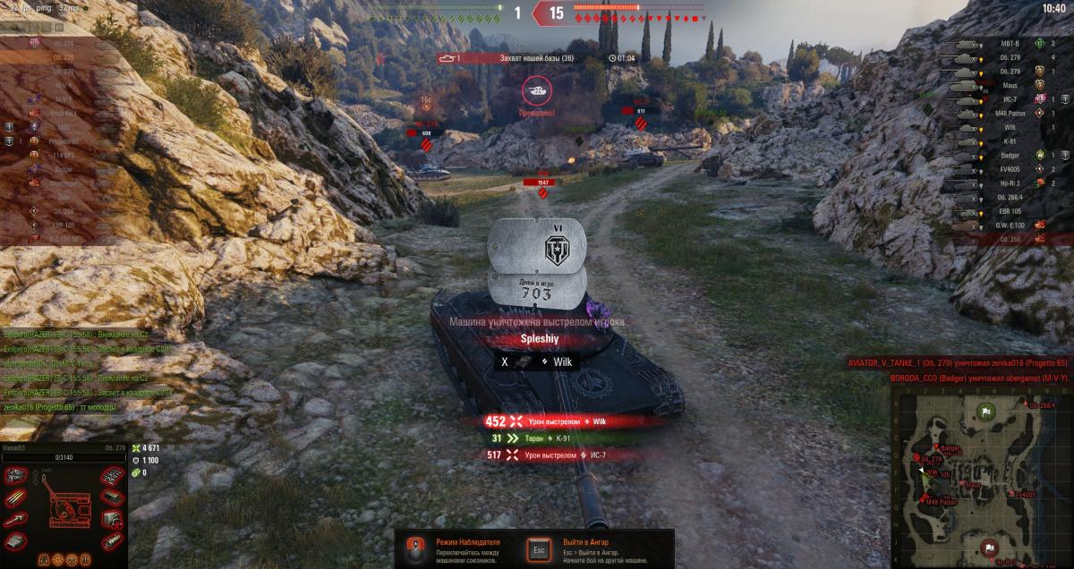 KPOT2338 Опубликовано: 30 августа, 2025 Игроки 21 694 публикации 38 532 боя Поделиться Опубликовано: 30 августа, 2025 30 авг 2025 - 23:05 пользователь ermak_79 сказал:так я и не спорю, что исчезают при заезде в укрытиев никуда вроде не наблюдал, а есть реплей?обычно все объяснимоНаблюдал, просто не обращал внимания.1. При выезде из круга видимости (~565м) - мгновенно2. При выезде за пределы круга обзора (у каждого танка свой) - через ~10 сек2а При повреждении приборов наблюдения3. При остановке в пределах круга обзора, но на расстоянии больше видимости стоячего танка - через ~10 сек3а При активации масксети у противника4. При окончании пожара - тоже в каком-то диапазоне видимости (это сложнее всего для наблюдения)5. Исчезают даже союзники при выходе за пределы дальности раций - мгновенно5а. При выбивании в красное рации вас или вашего союзника (тоже очень редко) Мог пропустить какие-то варианты, т.к. отвлекают 2 Что не делается, всё к лучшему! (с) Cos 700=0.3420, Cos 850=0.0872Кто нибудь привяжите его руки к подлокотникам, и клавиатуру у него заберите. И вообще любое устройство с которого можно печатать. (с) kojot7Введите уже артприцел для всей техники Ссылка на комментарий
