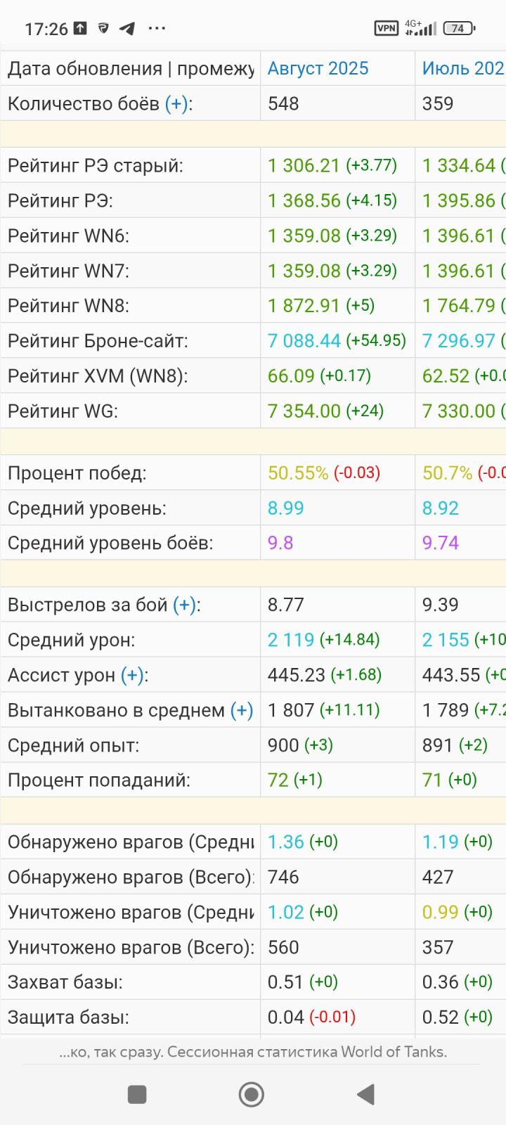 Viasat83 Опубликовано: 1 сентября, 2025 Игроки 7 570 публикаций 26 767 боёв Поделиться Опубликовано: 1 сентября, 2025 01 сен 2025 - 17:24 пользователь KyponaTka_khv сказал:Сессии за август в одну собрались. Очередное доказательство, что откруток нет.Ч - честность.https://forum-mt-prod.lesta.ru/monthly_09_2025/post-2792062-0-65012300-1756729364_thumb.jpg А мне 2 месяца подряд откручивают:https://forum-mt-prod.lesta.ru/monthly_09_2025/post-116899909-0-57508400-1756729640_thumb.jpgТак и живём, кто-то в любимчиках, кто-то не вылазит из открутошной. Огни большого города мерцают Ссылка на комментарий