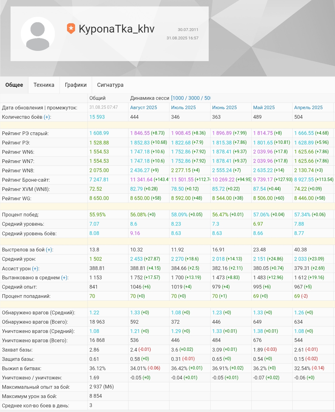 KyponaTka_khv Опубликовано: 1 сентября, 2025 Игроки 490 публикаций 20 084 боя Поделиться Опубликовано: 1 сентября, 2025 Сессии за август в одну собрались. Очередное доказательство, что откруток нет.Ч - честность.https://forum-mt-prod.lesta.ru/monthly_09_2025/post-2792062-0-65012300-1756729364_thumb.jpg В любых играх ММО халявщики и бродяги пасутся на стороне и только в Мире Танков они заполонили форум и пытаются диктовать условия. © GG7_2021 Ссылка на комментарий