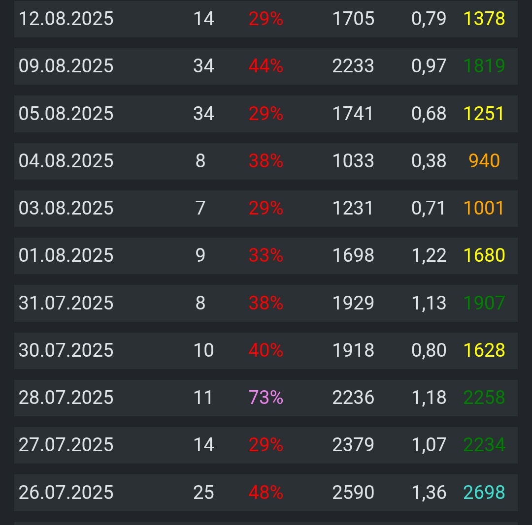 Viasat83 Опубликовано: 1 сентября, 2025 Игроки 7 570 публикаций 26 767 боёв Поделиться Опубликовано: 1 сентября, 2025 01 сен 2025 - 20:33 пользователь Oneida сказал:Ясно. И когда последний день подписки был? 28-ого числа?Да. Но применять методику по вызову спецугнетения я закончил как раз, где то 12-15 августа. И побюеды удивительным образом пошли. https://forum-mt-prod.lesta.ru/emoticons/school.gif Огни большого города мерцают Ссылка на комментарий
