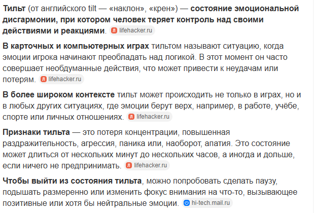 KPOT2338 Опубликовано: 5 сентября, 2025 Игроки 21 662 публикации 38 512 боёв Поделиться Опубликовано: 5 сентября, 2025 05 сен 2025 - 17:48 пользователь podkustnik сказал:кстати насчёт других игря вот например считаю, что фактор т.н. "тильта" в танках вообще отсутствует, в отличие от некотрых других шутеровЕсли тильт это психрасстройство от неудач, при котором снижается контроль за ситуацией, то это может быть в любой игреИ, кстати, ведёт к снижению результативности Что не делается, всё к лучшему! (с) Cos 700=0.3420, Cos 850=0.0872Кто нибудь привяжите его руки к подлокотникам, и клавиатуру у него заберите. И вообще любое устройство с которого можно печатать. (с) kojot7Введите уже артприцел для всей техники Ссылка на комментарий