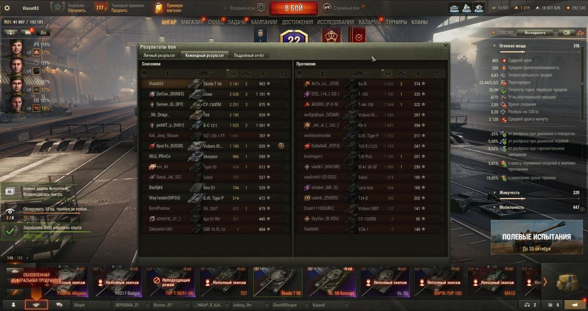 _DA_DOHAT Опубликовано: 16 октября, 2025 Игроки 1 548 публикаций 14 668 боёв Поделиться Опубликовано: 16 октября, 2025 16 окт 2025 - 10:42 пользователь Viasat83 сказал:классика? классикаhttps://forum-mt-prod.lesta.ru/monthly_10_2025/post-116899909-0-36741300-1760600554_thumb.jpgи вот так каждую сессию Не такая уж у тебя и плохая стата, посмотрел на чём ты играл во взводе Bourrasque 54%+, Škoda T 56 58%, а вот М47 не нашёл. Ты на очень хороших танках играл и стата у тебя на них отличная .... 1 RUTUBE: ловим рыбу, собираем грибы и учимся их готовить Ссылка на комментарий