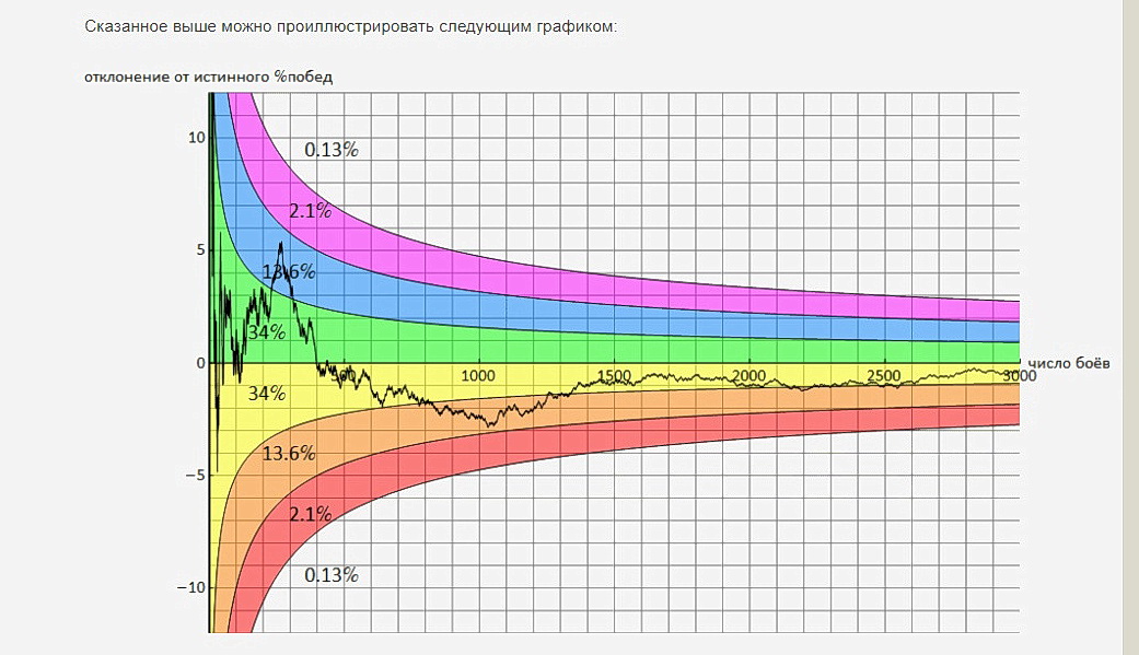 podkustnik Опубликовано: 22 октября, 2025 Игроки 20 886 публикаций 9 253 боя Поделиться Опубликовано: 22 октября, 2025 22 окт 2025 - 09:27 пользователь _DA_DOHAT сказал: При 300 боях разброс +8,5% в одну и -8,5 в другую. При 400 боях 7,5% (Я вчера ошибся) И ещё остаётся с 0,13% вероятности что стата может лететь до бесконечности https://forum-mt-prod.lesta.ru/emoticons/teacher.gif ложное утверждение07 июн 2025 - 00:07 пользователь KPOT2338 сказал:Т.е. для 100/200/300/400/500/10000/100000 боёв будет 10/7.1/5.8/5.0/4.5/1.0/0.3% «Сейчас можно сказать, что новых танков больше нет. Они кончились. Теперь мы будем двигаться в сторону развития новых игровых режимов, а вот новых машин вводить в игру гораздо меньше» С.Макаров 2019 Ссылка на комментарий