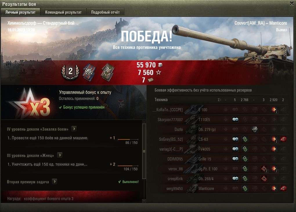 Ну ета борщ. Слив концовки боя, потому что светил плохо, а снарядов в бк на оставшихся врагов просто не хватит - мантикорная классика. Единственный, наверное, ЛТ, на котором в конце боя жалеешь, что зря стрелял в начале боя, пока это могли делать и союзники.