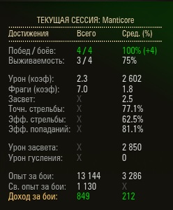 Вчера поигрался с Мантикорой ~11-12 боев, решил что буду существенно меньше стрелять и больше светить. По итогу 1400 урона + 3000 засвета вместо обычных 2200 урона + 2200 засвета http://cdn-frm-ru.lesta.ru/4.5/style_emoticons/wot/Smile_veryhappy.gif