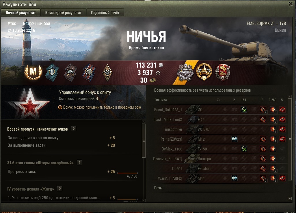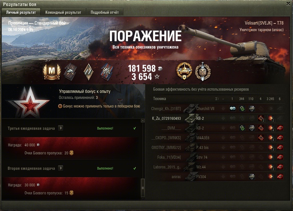 4. В скольки слотах используете боновое/трофейное оборудование на Т78?