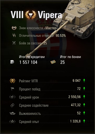 Танк какаха, привет. Нищий показатель у меня получился, на других премах, таких как е75ТС или ренегат,  то же самое делаешь просто фармя на ББ. Но геймплейно зараза нравится, аналогофнет, так сказать