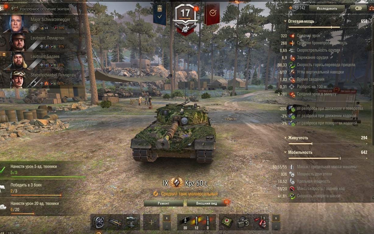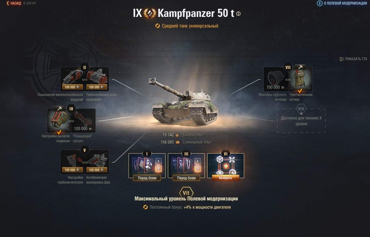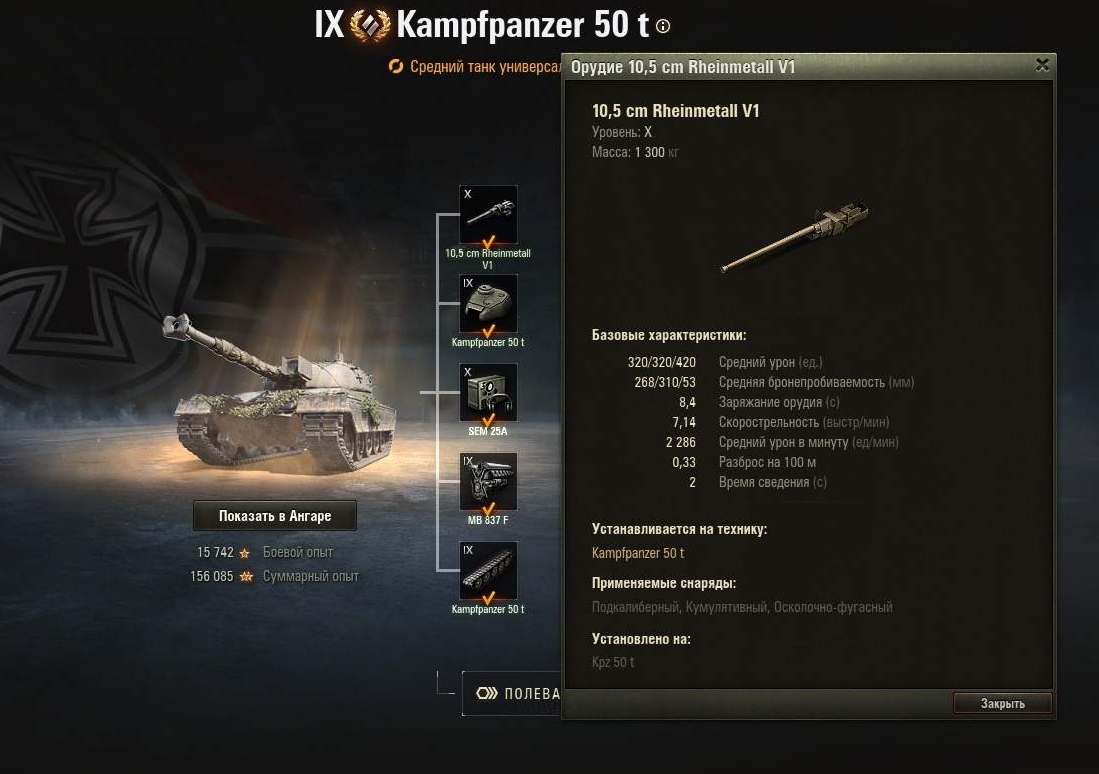 1. 1. Какое оборудование вы используете на Kampfpanzer 50 t?