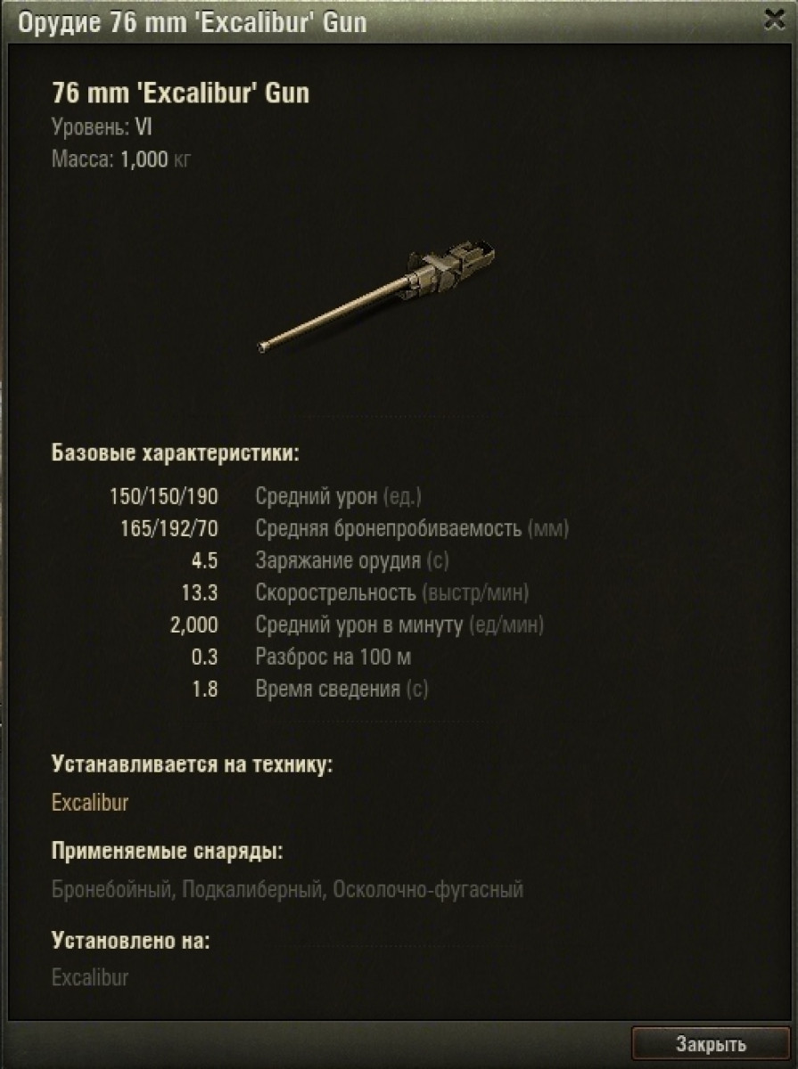 Но я все-таки предпочитаю смотреть на среднюю в моих собственных руках, на планку для мастера, на настрел для отметок. И во всех трех случаях получается, что Эскалибур входит в число лучших ПТ на уровне.