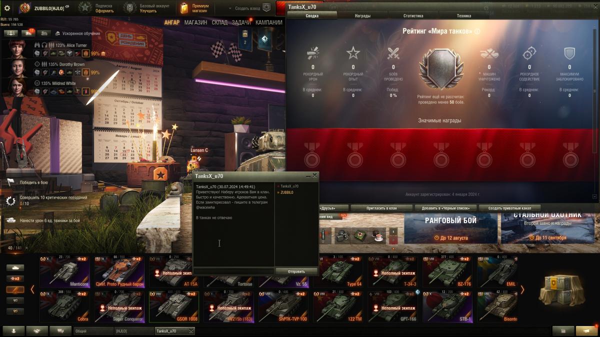 Разработчики Kafster Опубликовано: 6 августа, 2024 Разработчики 1 097 публикаций 57 796 боёв Разработчики Жалоба Поделиться Опубликовано: 6 августа, 2024 29 июл 2024 - 20:54 пользователь ZUBBlLO сказал:Проблеме не менее 3-х месяцев. Регулярно получаю от БОТОВ сообщения с приглашениями в кланы, с аккаунтов с 0 боёв... Писал в этой теме месяц назад по этому поводу, ответили что регулярно банят эти акки и ничего делать с этим массовым явлением не планируется, но это очень сильно раздражает!Я более чем уверен, что при желании забанить этих людей(человека) не составит труда, по например тому же мак адресу или id оборудования. Так зачем вы даёте ботоводам, зарабатывать на этом деньги? Есть клановые порталы и общий чат для этого, а тут бизнесмены создали бота и он тысячами отправляет сообщения подходящим для заказчика людям. Акк однодневку банят, создаётся ещё акк и по кругу. Не пора ли убрать это?https://forum-mt-prod.lesta.ru/monthly_07_2024/post-7962863-0-40724700-1722275373_thumb.jpghttps://forum-mt-prod.lesta.ru/monthly_08_2024/post-7962863-0-60501600-1722768961_thumb.jpgUpd: совсем обнаглели, сегодня свои услуги предлагают ботоводы...https://forum-mt-prod.lesta.ru/monthly_07_2024/post-7962863-0-21471200-1722358660_thumb.jpgКак вы и сами сказали, ответ на этот вопрос уже давался ранее. На данный момент такие учётные записи банятся, других мер на данный момент не предусмотрено.Если вас очень сильно раздражают такие сообщения, то вы можете разрешить получение личных сообщений только от игроков из списка друзей, данная функция включается в "Настройках".30 июл 2024 - 11:25 пользователь _CoBe_CTb_ сказал:Добрый день! Скажите пожалуйста продавалась ли когда-либо оборудование за золото, а то один товарищ утверждает что ставил оборудование за золото.так ли это?Добрый день.Насколько я помню, оборудование всегда можно было купить за ресурсы, зарабатываемые в игре (кредиты, боны и т.д.). Оборудование за золото если и продавалось, то только в составе каких-нибудь наборов (например танк + оборудование и т.д.).30 июл 2024 - 16:04 пользователь AlexVtanke89 сказал:Всем доброго времени суток, вопрос по карте Химельсдорф. Почему нижний респ имеет проезд между домами, а верхний нет?Здравствуйте.У верхнего респа на Химмельсдорфе есть другие преимущества, которые уравновешивают ситуацию в бою. Например, более удобные укрытия на "банане" и здание вокзала на 8, 9 и 0 линиях.30 июл 2024 - 18:25 пользователь BulletRunner сказал:Здравствуйте, можно ли убрать ограничитель на жалобы,заканчиваются за 2-3 боя, это не серьезно!Здравствуйте.На данный момент расширять лимит жалоб или же полностью его убирать не планируется.30 июл 2024 - 21:22 пользователь fisobot сказал:Все вопросы по ттх техники вы отсылаете в раздел предложений, я туда пошёл, предложил вариант изменения ттх одного танка, предложил, а не спрашивал "ну когда же", так меня ткнули носом в "кттс" и мгновенно закрыли тему. Зачем вы посылаете людей в предложения с подобными вопросами, если там им не рады?Хочу отметить, что закрытие темы не означает, что команда разработки с ней не ознакомится. Вы выдвинули ваше предложение, и для того, чтобы не дублировать обсуждениями тему танка из раздела "Техника" она была закрыта. Команда разработки рассмотрит ваше предложение и, если это будет необходимо, займётся изменениями ТТХ предложенного вами танка.P.S.: Как владелец Т77 не считаю, что танк прям требует апа. Да, он действительно сложен в реализации, но словить темп этого танка в бою - то он сможет выдавать очень даже непл