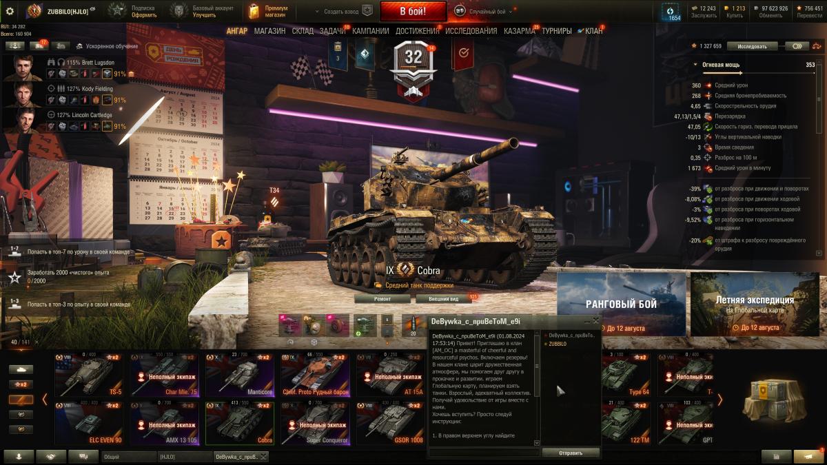 Разработчики Kafster Опубликовано: 12 июля, 2024 Разработчики 1 097 публикаций 57 796 боёв Разработчики Жалоба Поделиться Опубликовано: 12 июля, 2024 05 июл 2024 - 10:45 пользователь alya7777 сказал:Вопрос к разработчикам по барабанным танкам? Недавно столкнулся с неприятной ситуацией, в барабане на 4 снаряда осталось 2, я решил (учитывая ситуацию в бою) перезарядить барабан на полную и не смог. Снаряды были подкалиберные, их больше не осталось. То есть когда я нажимал на перезарядку программа не находила подкалиберные снаряды для дозаряда, и оставляла все как есть, то есть 2 снаряда в барабане. Но мне то нужен полный барабан с которым можно отправить противника в ангар(в самом деле выезжать же с половинным барабаном на фулового ).Как результат мне пришлось растрелять эти 2 снаряда чтобы началась перезарядка уже ббшками. Вот мне и интересно неужели так сложно сделать один из двух вариантов. 1: дозарядку производить имеющимися снарядами. 2: При отсутствии нужного количества снарядов одного типа, произвести выгрузку, и далее как обычно зарядка до полного другим типом снарядов. Ведь ситуация в которой приходится расстреливать снаряды, чтобы перезарядиться попахивает маразмом.А что вам в вашей ситуации мешало просто переключиться на ББ и зарядить полный барабан? Что же касается предложенных вам доработок - на данный момент таких изменений в планах нет.05 июл 2024 - 11:39 пользователь alya7777 сказал:Только что еще один вопросик созрел. На дух не выношу арендную технику. Как сделать так чтобы она в ангаре даже не светилась. да и в натиске каждый раз отключать приходится почему? неужели нельзя кнопку постоянной сделать раз выключил и все.Вам в теме вопросов на это уже ответили. В фильтре техники есть кнопка, скрывающая всю арендную технику.06 июл 2024 - 09:14 пользователь CTPELOCK сказал:Ответьте пожалуйста будет ли еще в продаже skorpion g?Когда-нибудь может и будет, но на данный момент таких планов нет. Следите за новостями.06 июл 2024 - 14:23 пользователь RAIN_FORCED сказал:как отключить звук барабанов в стальном охотнике?Уволить барабанщика А если серьёзно, то я подозреваю, что вы имеете в виду звук перезарядки барабана и звуки дозарядки внутри барабана. Попробуйте снизить громкость эффектов, однако учитывайте, что снизить громкость конкретно одного эффекта невозможно. Также как опция - полностью отключите звук в игре.07 июл 2024 - 01:41 пользователь Racundra сказал:Можно ли задать некчёмный вопрос? Влияение двигателя на скорость поворота шасси.Примечание - Замеры проводились с 100% мехводом (90% мехвод + 10% бонуса от командира) на карте Химмельсдорф только на жёстком грунте, у всех 5 танков скорость поворота шасси в движение падала на 15% от скорости поворота шасси на месте. Все данные лишь приблизительные, а не сверхточные, поэтому о них раскрывать мне не нужно, меня они не интересуют, меня интересует лишь то, что в самом конце этого текста.- Возьмём МТ-25 с топовой гусеницей в 48 градусов и с 600 мощностью двигателя. Установим топовый двигатель с 740 мощностью двигателя. Как должна изменится скорость поворота шасси? У меня на практике получилось у стокового двигателя ~50 градусов, а при установке топового двигателя стало ~67. Почему так изменилось?- Берём Rhm.Pzw. скорость поворота шасси 54 градусов, а мощность двигателя составляет 1100, но по итогу скорость поворота шасси на практике получается ~43 градуса. Думаете проходим
