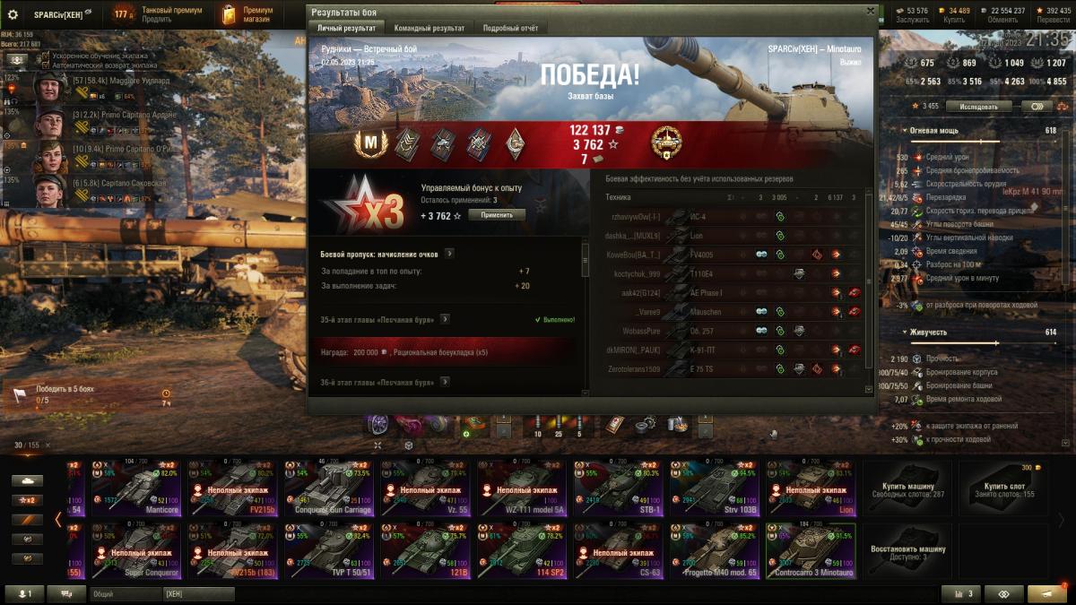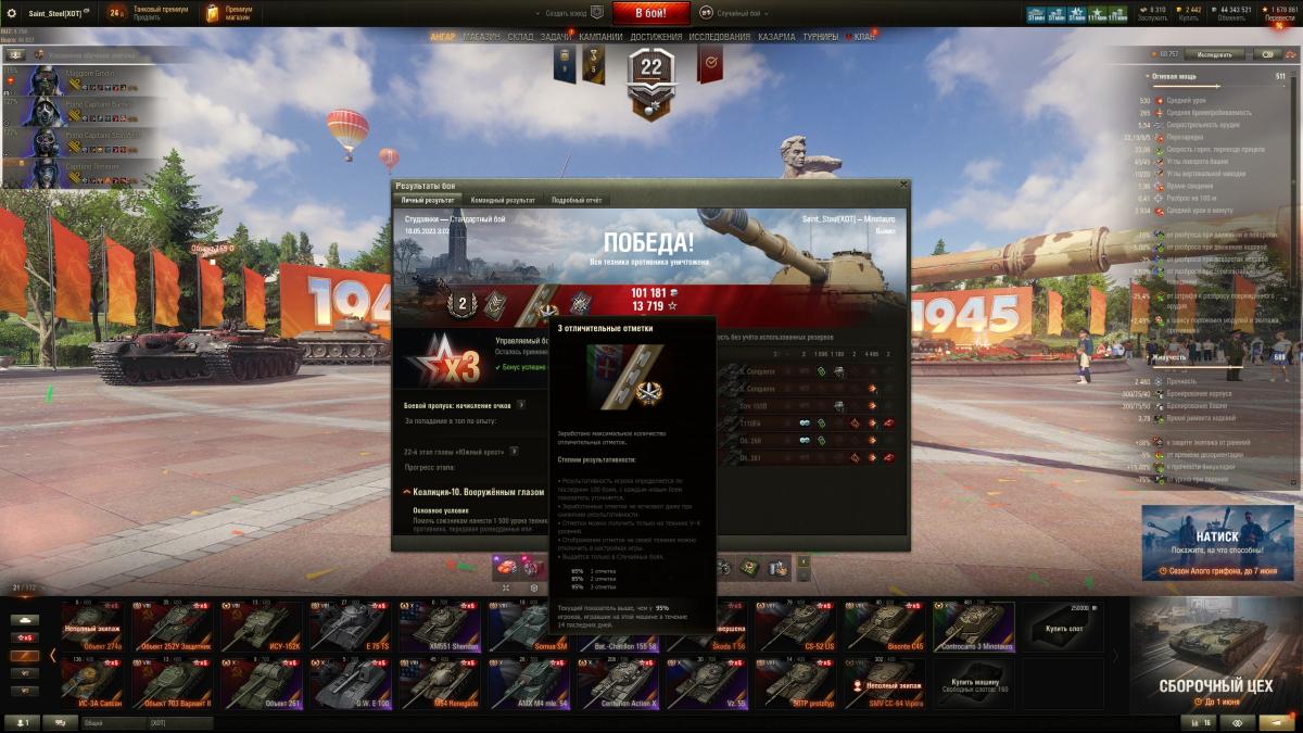Спасибо! Я думаю, с вашим средним уроном на Минотавре это в любом случае дело времени и удачного боя, когда удастся одновременно настрелять 6к+ и сделать 6-7 фрагов. Кстати, хотел бы просить у вас совета, как у носителя 2-х отметок на стволе. Можете ли дать какие-то личные рекомендации по эффективной игре на Минотавре? У меня пока и 1-й нет, но данная ПТ очень нравится и есть вероятность, что попробую запотеть)