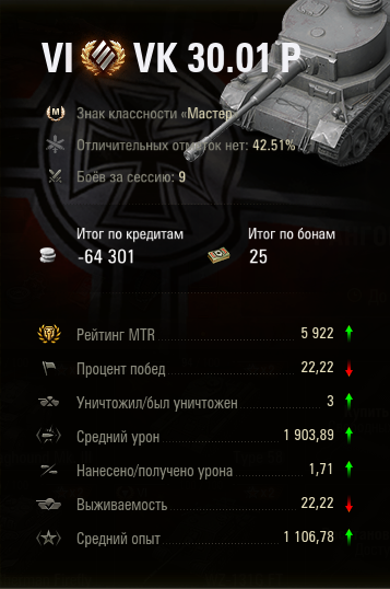 Так на VK 30.01 никто не играет :Smile_default: Я его перекатал с 670 урона на 1000. Было 300 боев. Сейчас 420. Ну тут и легко высчитать средний урон в этих 120 боях 1825 получилось.