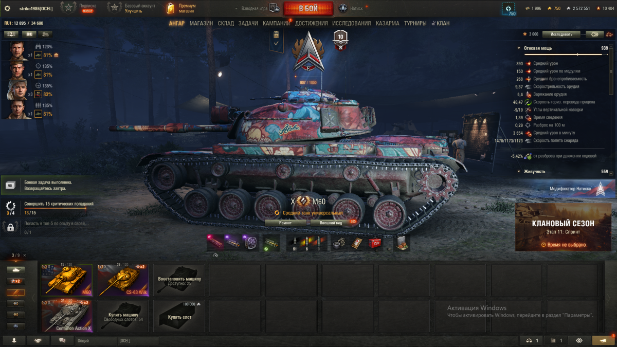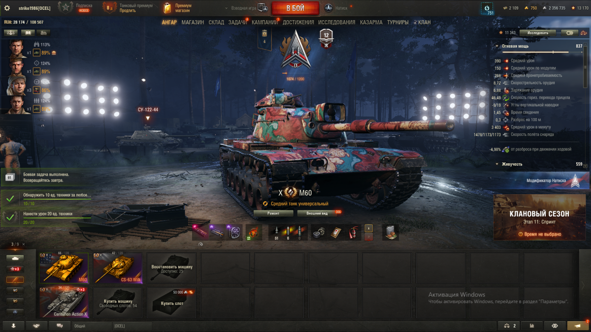 Вот именно, ну что это? Учитывая увеличение хп танков в натиске, это все равно что в рандоме 1600 давать (т.е. четыре выстрела). М60 сильно не вписывается в мету натиска, зачем его брать постоянно? Чтобы бои сливать? Равно как и штурмтигр