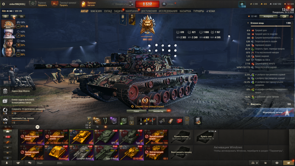 Одни танки сильнее, другие слабее, можно подумать, это открытие? У нас по 5-7 лет танки катаются откровенно мусорными. А в натиск берется только метовая техника, и чем выше по рангам - тем больше требования. М60 явно не соответствует, ни по ТТХ, ни по назначению. Снайперский танк (да еще и с такими специфическими ТТХ) в формате 7х7 не нужен