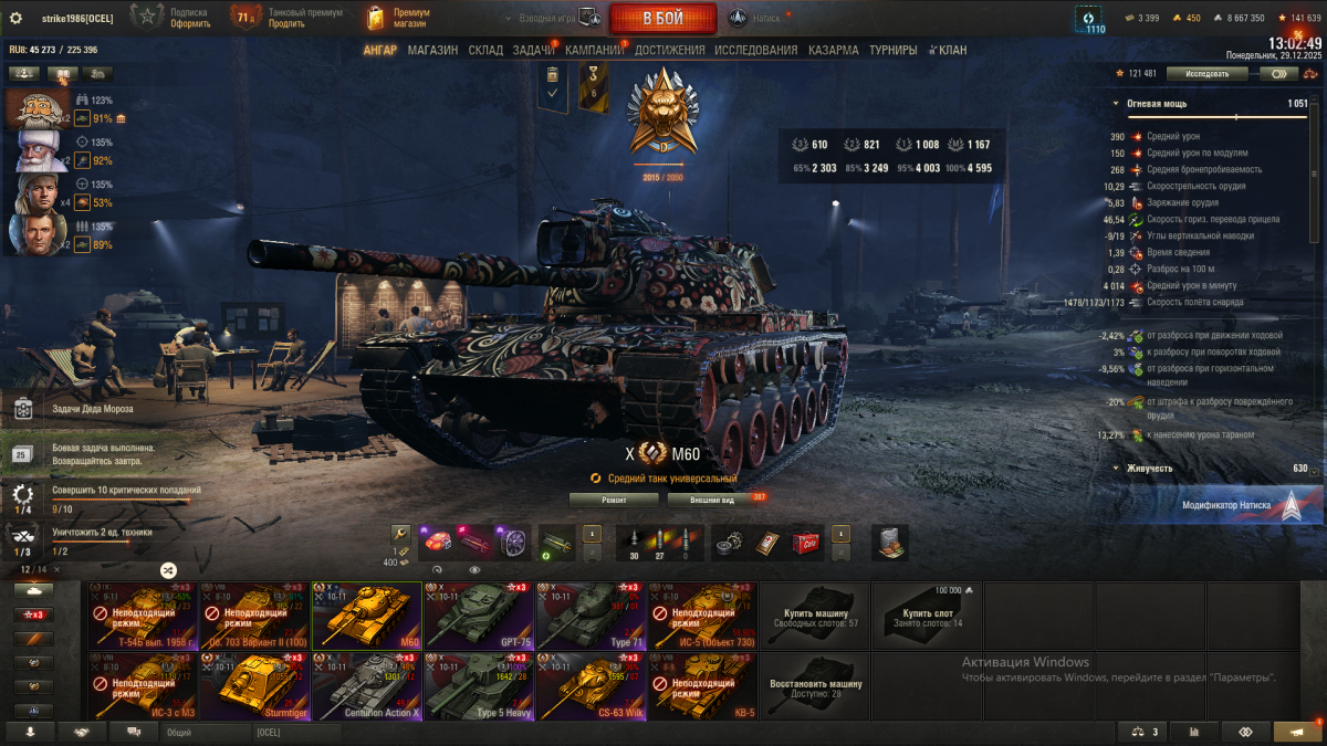 м60 выше пробой базовыми   261 и 268 и это прям сильно разница. м60 похож на цента х, только чуть послабее. цент х поточнее и там башня более танкует.