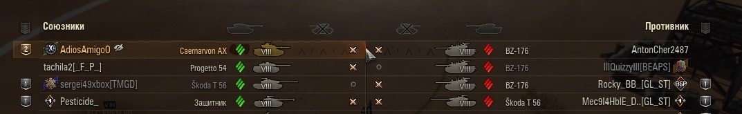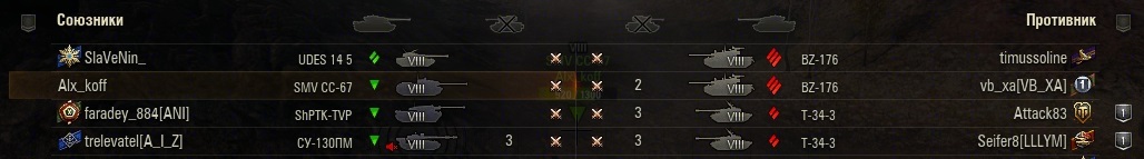 Шкода 56, Крайслер, 703-2, Ренегад, Е75ТС, Тигр 2, Гонсало. Каждый способен огрызнуться и доставить проблем. Bz ни каких проблем доставить не смог. В этом смысл моего поста. За рулём был обычный 50,5 % игрок с 30 к боёв за спиной. Объект 283 не просто ст9. Это худшая 9 - ка в игре по требованиям на отметки. Поэтому он и выбран в сравнение, имба 8 лвл и самый *** танк 9 лвл.