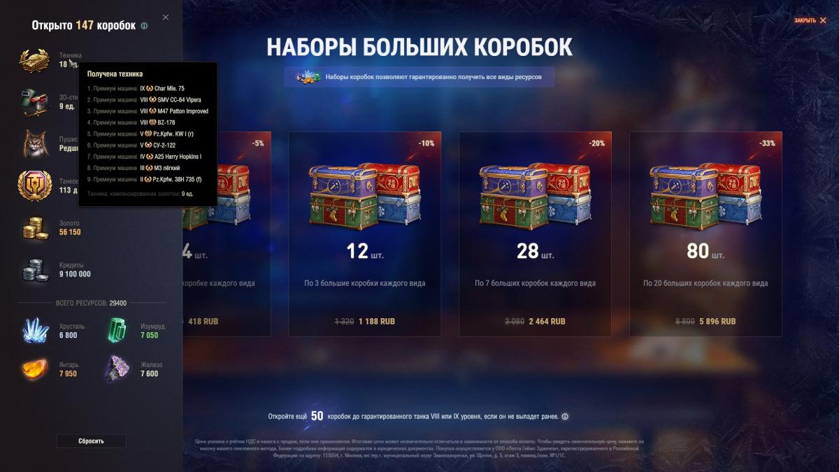 Мне выпал раньше  потребовалось 147 коробок у меня АМБТ уже был.Но мне и голда в виде компенсации не нужна ,голда это была так чисто в довесок,если бы мне нужна была голда ,я бы купил ее просто в прем магазине.Да и если бы БЗ продавался за 12к рублей я бы наверное его и не стал бы брать.shot_167.jpg