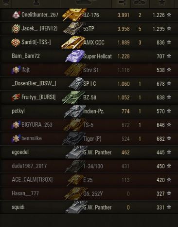 Топ 3, 2026: *loading...* || Топ 3, 2025: Waffenträger auf Pz. IV, Pz.Kpfw. S35 739 (f), Pz.Kpfw. 38H 735 (f) || Топ 3, 2024: TVP T 50/51, AMX 50 Foch B, Waffenträger auf Pz. IV || Топ 3, 2023: Bat.-Châtillon Bourrasque, ShPTK-TVP 100, Pz.Kpfw. 38H 735 (f) || Топ 3, 2022: СУ-130ПМ, ShPTK-TVP 100, Waffenträger auf Pz. IV || Топ 3, 2021: Т-28Э, Pz.Kpfw. S35 739 (f), Waffenträger auf Pz. IV || Топ 3, 2020: Т-28Э, Rheinmetall Skorpion G, Waffenträger auf Pz. IV || Топ 3, 2019: Т-28Э, Waffenträger auf Pz. IV, Rheinmetall Skorpion G || Топ 3, 2018: Waffenträger auf Pz. IV, Rheinmetall Skorpion G, Т-28Э || Топ 3, 2017: Rheinmetall Skorpion G, Pz.Kpfw. S35 739 (f), Т-28Э || Топ 3, 2016: Waffenträger auf Pz. IV, Т-28Э, Rhm.-Borsig Waffenträger || Топ 3, 2015: Waffenträger auf Pz. IV, E 25, Rhm.-Borsig Waffenträger || Топ 3, 2014: M18 Hellcat, Е 25, Rhm.-Borsig Waffentrager || Топ 3, 2013: Объект 268, M18 Hellcat, FCM 36 Pak 40 || Топ 3, 2012: Marder II, КВ, СУ-26 || Топ, 2011: All