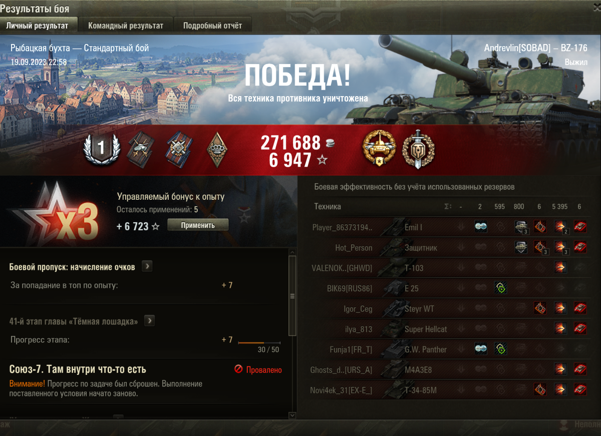 Взял на BZ 176 второго мастера за сегодня (чуть выше скидывал сообщение о первом бое на мастера). Опять просто раскидал в одиночку пол команды в одноуровневом бою. 6225 урона, 7 фрагов, 355 ассита и внимание, 1904 чистого опыта за бой! Сегодня за 7 боёв на BZ сделал 4224 среднего урона + 487 ассиста. И это на ТТ 8-ого уровня. Изменено пользователем MrPride33