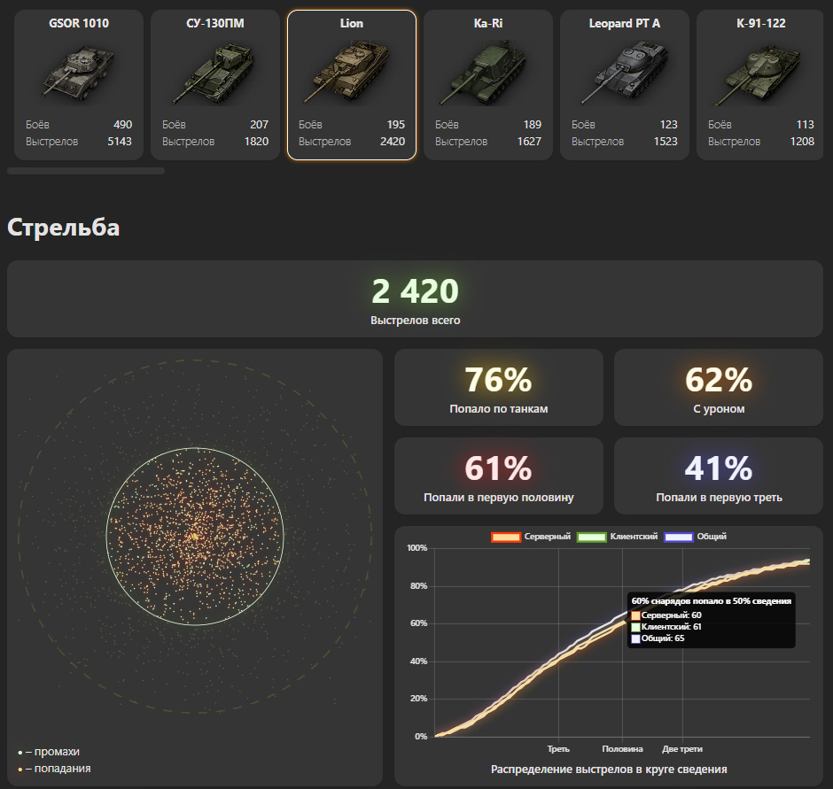 Непосредственно распределение снарядов в кругу сведения идентично для всей техники в игре и единый шанс попасть ровно в центр 10%