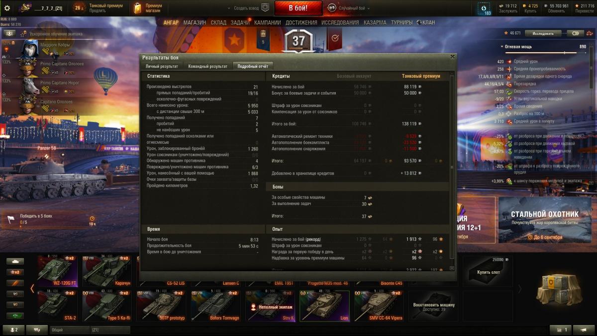 В качестве примера, мой последний бой на Lion выглядел так: стреляю - мимо / гусля / не пробил.
