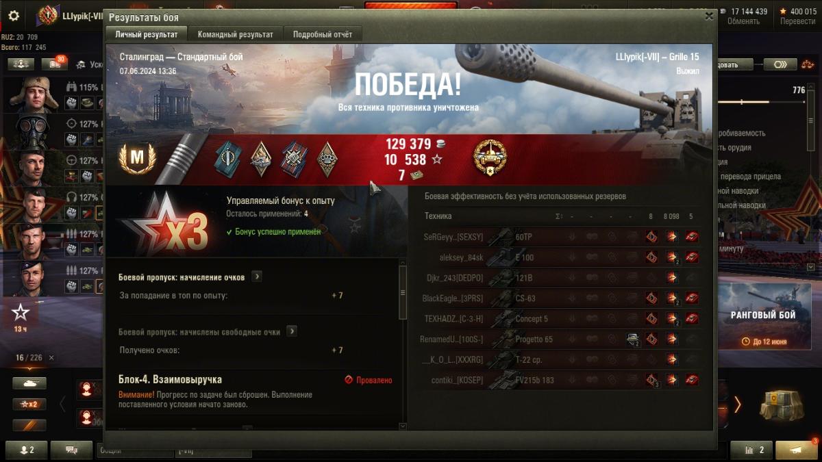Ссылка на реплей: http://tankireplays.lesta.ru/site/14549658#layv_oks-abv_f1-grille_15