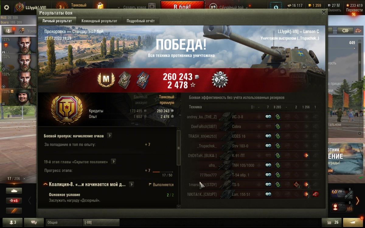 бой 2к ассиста, 2к урона, 2 фрага, 2 степень - это ~ 6к рейтинга по технике, обратите на это внимание в ближайшем бою