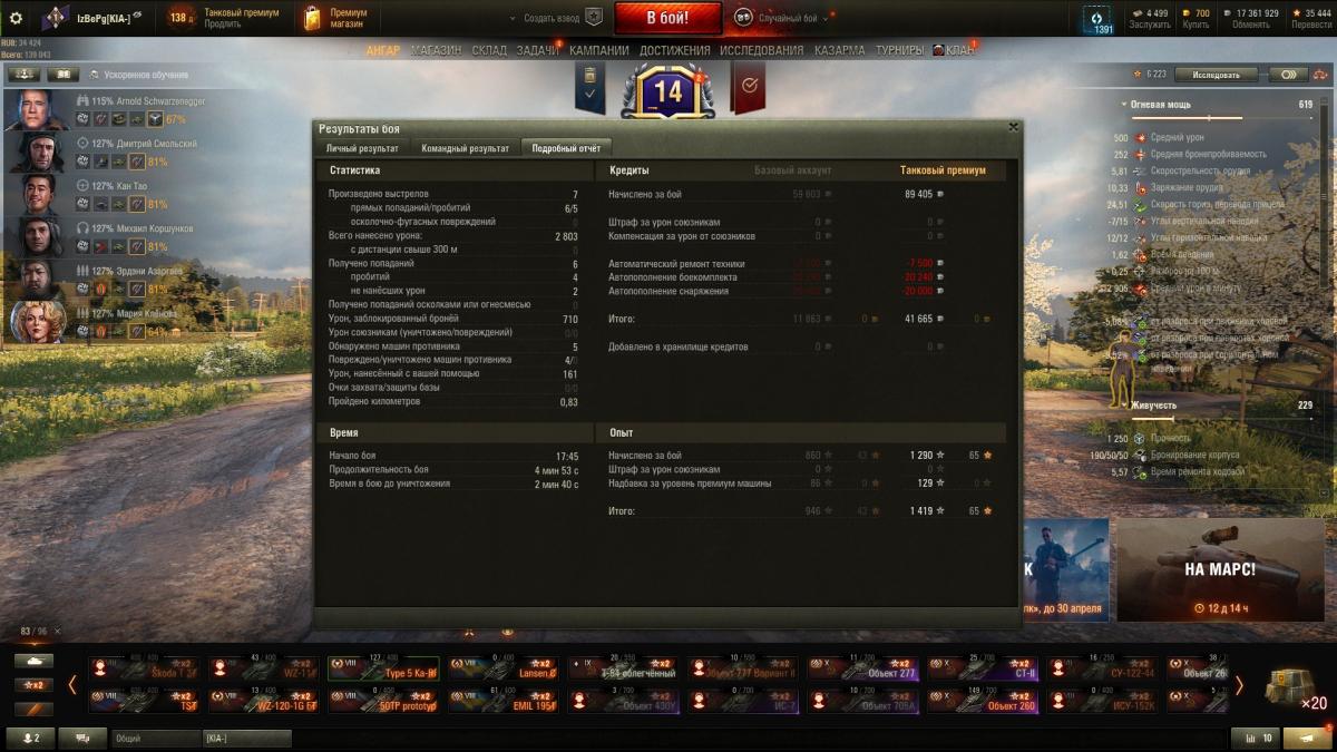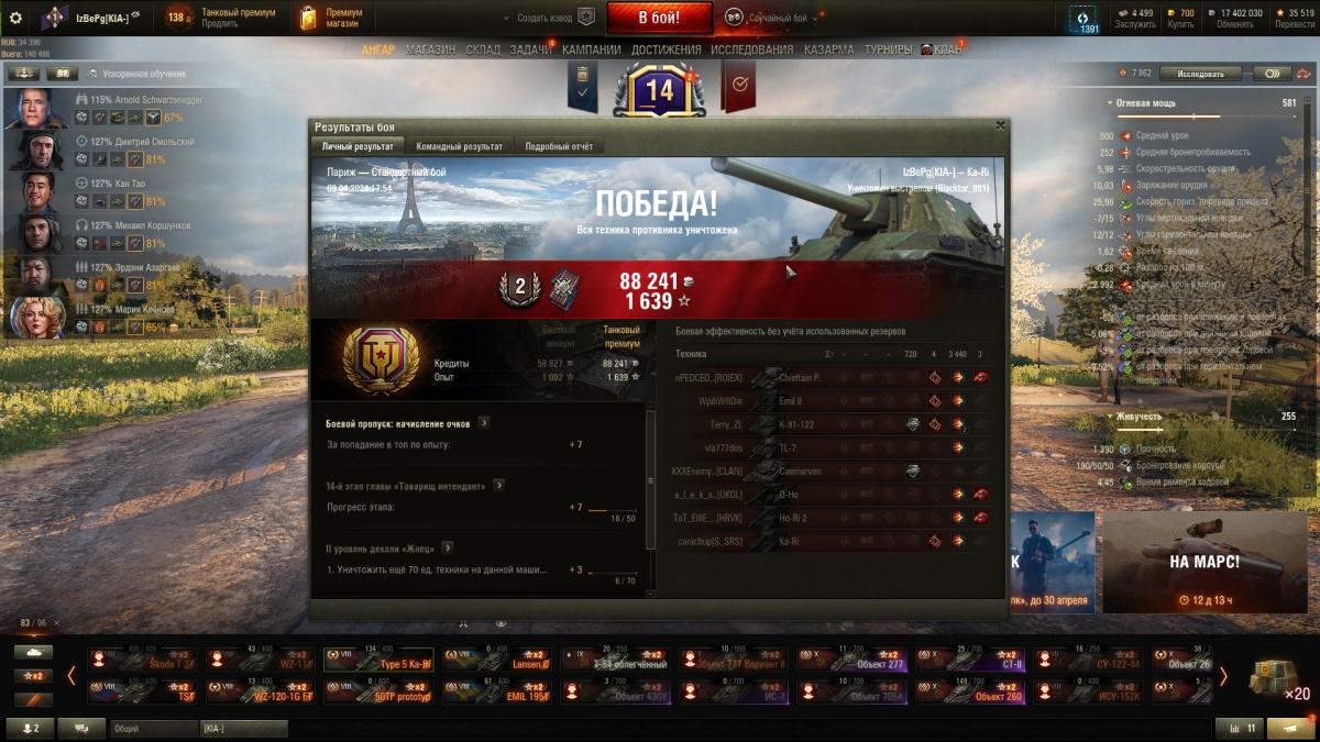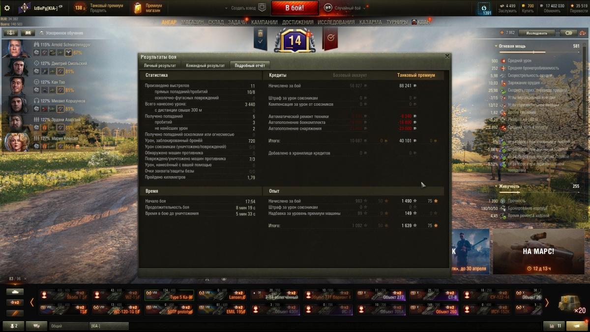 на кари 3100 урона и 40 асист - 88365, на скорпе 2884 урона без ассиста - 82493. Больше ста из-за клан резерва получилось