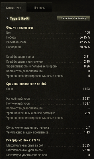 Поэтому всегда оценивал танки исключительно по цифрам. Не своим, танк может как зайти, так и нет, и не по твоим, где может быть то же самое, а по общим.