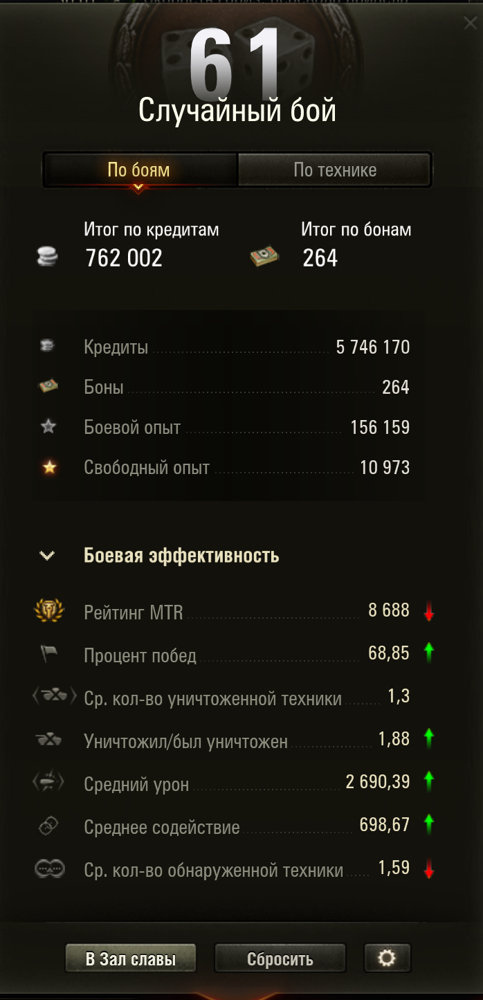 Так они и тянут меня к 48%. 9 лет назад у меня процент был в районе 51,6% и шел вверх. Год назад вернулся в игру (8 лет почти не играл), полгода ушло на освоение. И после нового года играю уже даже лучше, чем тогда. Однако процент опустился за это время до 50.6% и дальше падает. Могло повлиять то что не хватает реакции очень часто (когда не успеваю выстрелить по внезапно пролетающему мимо танку), но и 10 лет назад не сказать что был быстр, тогда это тоже мешало. Ну и еще часть боев в выходные дни было проведено навеселе, понятное дело там не могли быть высокие цифры) Поэтому я свой уровень знаю и на статиста не претендую, но мне хотя бы вернуть то что было 9 лет назад.