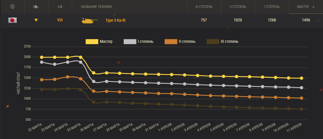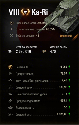 Да вообще- то по всем показателям вышло: ПП, средний урон, даже по отметкам выше всех ПТ. При этом в отличие от того же БЗ176, у Кари в зависимости от отметки не меняется место в топе- просто первая пт.