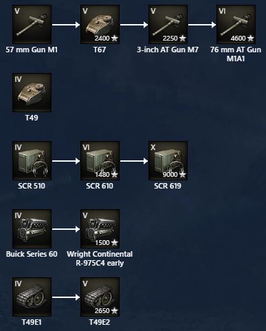 Скоро от установки 57-мм орудия на T42 GMC отказались. Было решено разработать новую противотанковую САУ, впоследствии получившая обозначение 57 mm Gun Motor Carriage T49. Был заключён контракт на разработку и производство двух опытных экземпляров. Первый вариант машины оснащался ходовой от T42 GMC, корпус был серьёзно переделан, скорее всего силовая установка также была заменена, однако в документах этот момент не указывается. Второй прототип строился «с нуля» уже с новым корпусом и башней – эта машина обозначалась как 75 mm Gun Motor Carriage T67. Сборка была завершена в ноябре 1942 года, после чего Т67 отправился на Абердинский полигон, где успешно прошел как ходовые, так и огневые испытания. Испытания стрельбы показали, что сделанное с запасом шасси САУ позволило точно производить выстрел. После хорошего результата испытаний машины разработчики решили установить 76-мм пушку M1. Смысл этого изменения заключался в том, что 3-дюймовое орудие имело «зенитную» баллистику. Из-за установки нового орудия масса САУ снова увеличилась. Из-за увеличения массы подвеску машины усилили. Испытания с новым орудием показали, что САУ по характеристикам лучше чем T57 GMC.