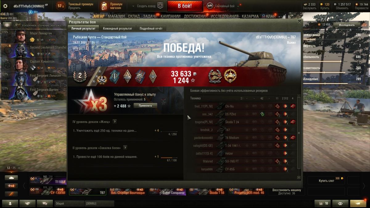 п.с. играл все сессии соло. Обратил внимание на то, что подавляющее большинство любителей как т67, так и похожей на нее тачки за боны, не умеют в 1/2 линию от слова совсем. Кустики заняли в начале боя на базке, и там весь бой на отдыхе стоят:trollface: