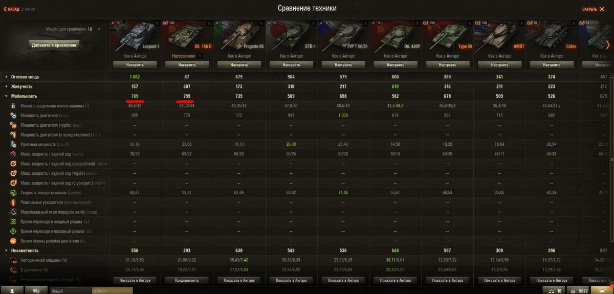 И тайп 59(кстати далекооо не самый медленный и весьма юркий танк на 8ур) выигрывает у 156 только скоростью поворота. И то если на 156 также поставить УМП, кинуть паёк и экипаж с перками, то и это превосходство будет нивелировано. Ну т.е. вот настроенный 156 примерно как мой Леопард1 в ангаре. Давай уезжай.(Поставил Умп+турбо+приводы). Давай так, из 9 средних танков что у меня есть в ангаре, по мобильности 156 на втором месте с небольшим отрывом от 1.