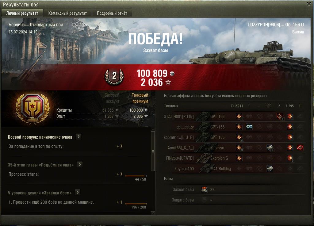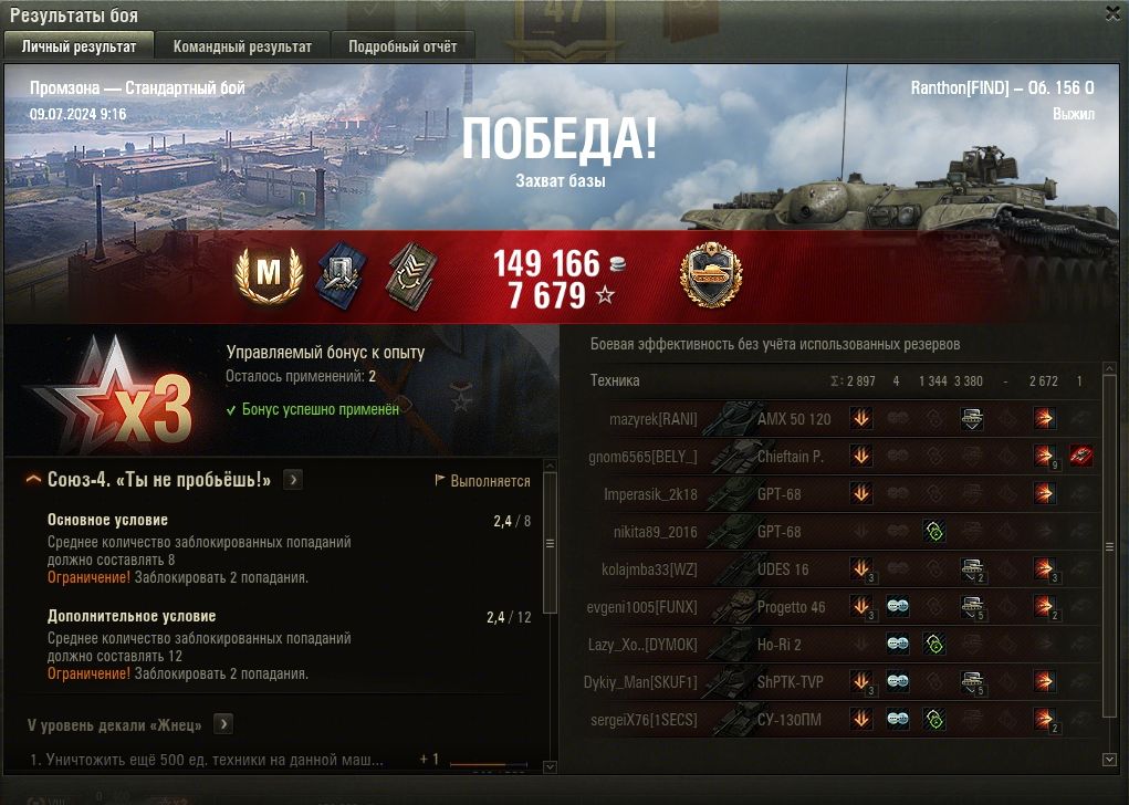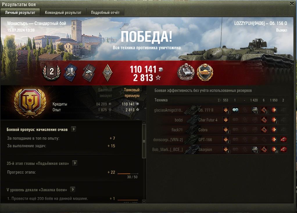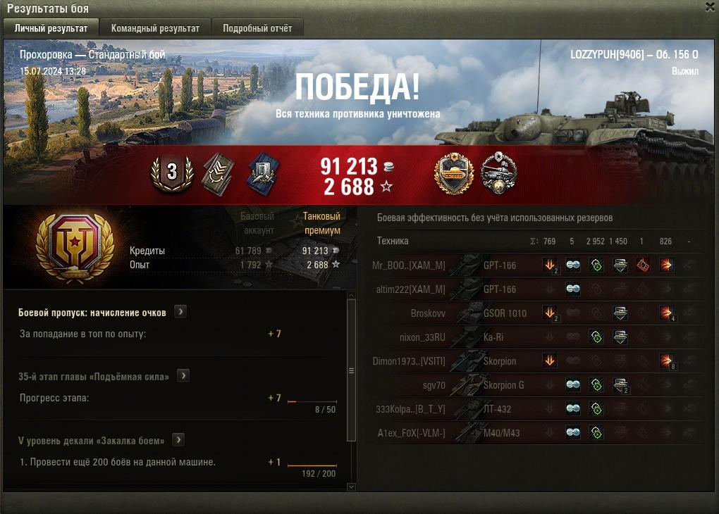 Достижения в бою: «Стальная cтена», «Непробиваемый», «Целеуказатель», Знак классности «Мастер»