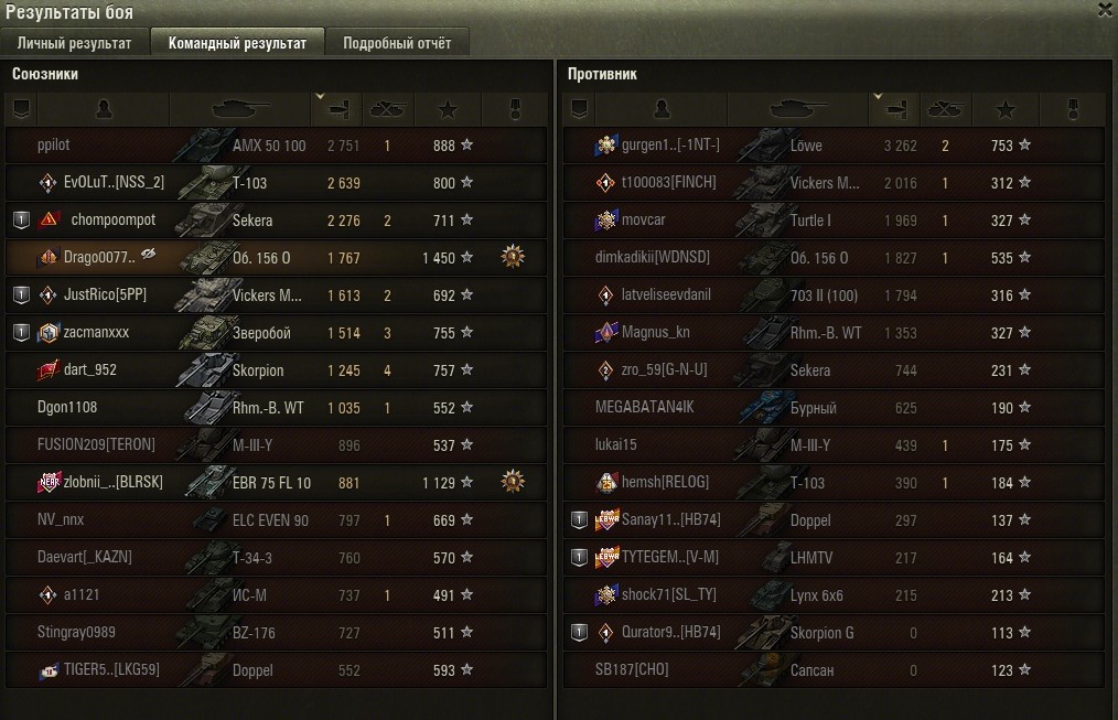 Может я играть разучился?! Купил на предпоследнем сборочном цеху за 4500деревянных, шел в коллекции с бесполезным ХТ-130. Сейчас оба стоят, пылятся в ангаре и оба неиграбельны. В начале об.156 О  пробивался сложно игроками, но спустя время видимо чье то нытье помогло превратить из грозной штурмовой машины прорывающей фланги в стоячую забугорную типичную арту "поддержки", поливающей почти ничего не тратящей "бобринной струей" :Smile_great:   При "мансовании" чтобы не выцеливали уязвимый командирский люк или маску орудия, сделаешь чуть поворот вправо или влево сразу пробой в бортину. Так же под горку, с горки, верхний лист и нижний картон. По этой же причине нельзя вставать в клинч иначе напихают с локтя. А вообще живет ровно столько, сколько ему прикажет ВБР, иначе как объяснить такую меткость у таких игроков,( и это не единичный случай )