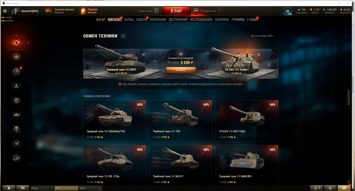 H_E_K_P_O_M_A_H_T_ Опубликовано: 6 октября, 2023 Игроки 5 283 публикации 294 493 боя Жалоба Поделиться Опубликовано: 6 октября, 2023 05 окт 2023 - 15:47 пользователь H_E_K_P_O_M_A_H_T_ сказал: Для нытиков сабжа: 56TP в трейд-ин можно поменять на любой без доплаты 06 окт 2023 - 09:13 пользователь H_E_K_P_O_M_A_H_T_ сказал: Зашёл сегодня в клиент - уже написано с доплатой 5 500 Походу вчера напарили с обменом ой не могу... Конфигурация XVM ◄ HEKPOMAHT ► Ссылка на комментарий Поделиться на других сайтах Другие способы поделиться...