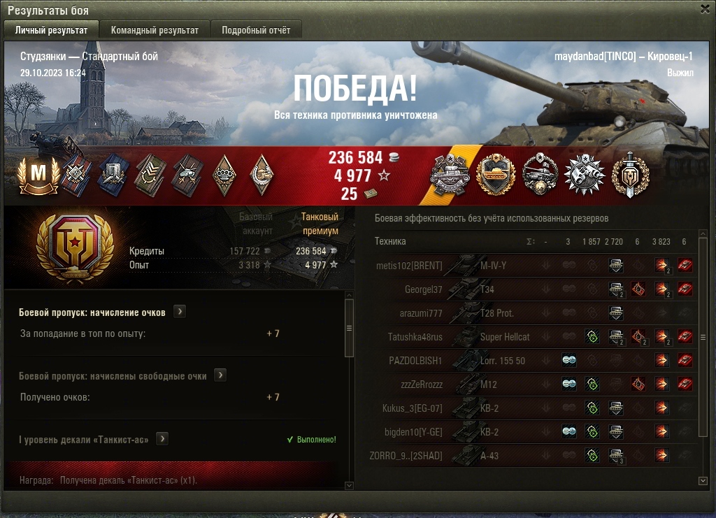 NosiUsi Опубликовано: 1 ноября, 2023 Игроки 58 публикаций 22 019 боёв Жалоба Поделиться Опубликовано: 1 ноября, 2023 29 окт 2023 - 17:11 пользователь maydanbad сказал: Отдел баланса видимо работает также как ВБР: +-25%. У меня нет другого объяснения этой ситуации, когда танк за марафон с платным "3D-стилем" по все параметрам хуже, чем Кировец-1, который давали на халяву. 10 бой, взял мастера и кучу медалек. Понтяно что бой в топе, но он: едет (!), танкует (!!), попадает (!!!), КД меньше (!!!!). Ну как так?! Потому что он норм! =) Ссылка на комментарий Поделиться на других сайтах Другие способы поделиться...