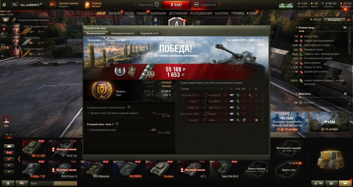 Izikiel Опубликовано: 1 октября, 2023 Игроки 668 публикаций 68 234 боя Жалоба Поделиться Опубликовано: 1 октября, 2023 (изменено) Решил попробовать танк, чего зря стоит. Поставил вентиль, оптику, стаб, так как без понятия, что за аппарат.Первый бой и "мастер". На этом, думаю, стоит и остановиться: скорости нет (был без турбины, по речке не мог уехать от КВ с МЗ, тот с той же скоростью ехал за мной и стрелял), крутится еле-еле на месте, с горки хорошо летит, в гору - капец просто... В общем, 1 боя хватило Победа! Бой: Редшир Техника: AMX 13 (FL 11) Получено: (X 2) 4 608 81 019 Награды и Достижения: «Костолом»; «Огонь на поражение»; «Целеуказатель»; «Дозорный»; Знак классности «Мастер» Изменено 1 октября, 2023 пользователем Izikiel Я - нуб, играть не умею, на ваши комменты ********* Ссылка на комментарий Поделиться на других сайтах Другие способы поделиться...