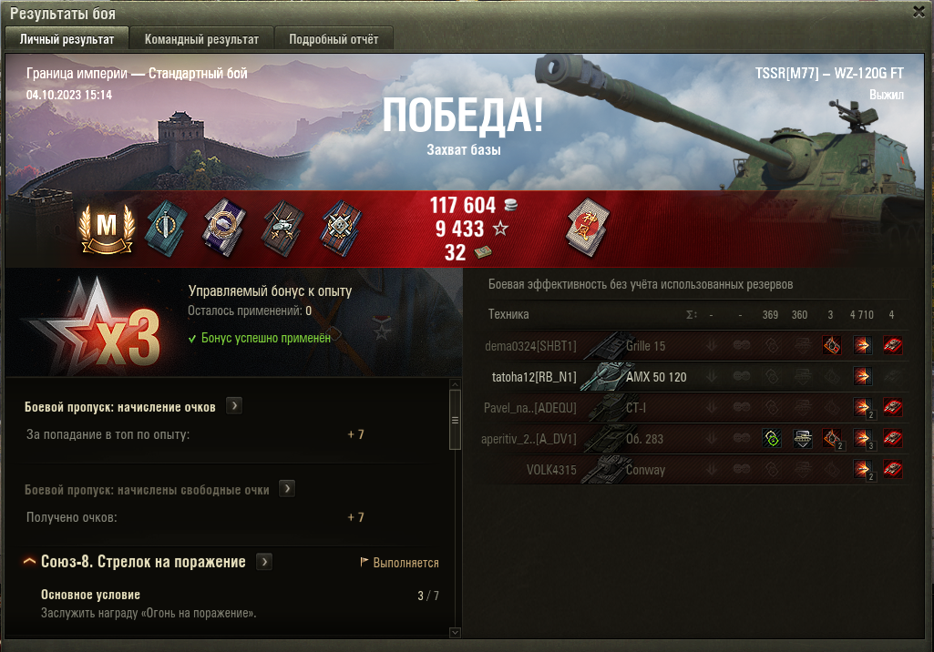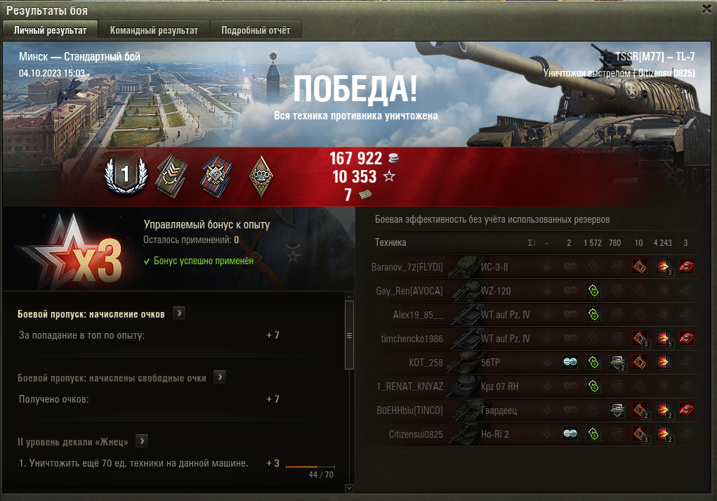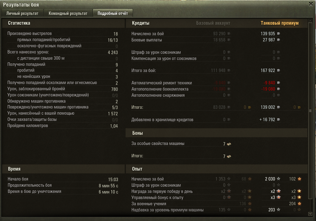 Всё-таки, похоже, эта ПТ реально фармит ощутимо больше остальных прем-9. Только что отыграл два боя подряд на ней и на китайской прем-пт-9. Почти весь настрел что там, что там, был практически в упор, по своему свету. Результаты сравнимые: на китайце на 500 больше урона, на TL на 1200 больше подсвета. Но при этом кредитов за бой на TL-7 дали чуть ли не в полтора раза больше.