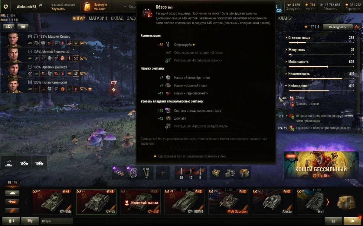 А СУ-85 когда-то проходил, возможно самые лёгкие 3 отметки в игре. При этом не самое плохое орудие. Не помню точно про оборудование, то ли оптика-досылатель-вентилятор, то ли стереотруба-досылатель-вентилятор. На Штуге точно было с оптикой.