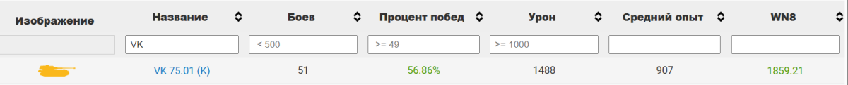 Заходим на один никому не интересный сайт, выбираем VK 75.01 K, всё оставляем как есть, лишь ставим ПМ на максимум + в первой паре вездеход (скрин 1).