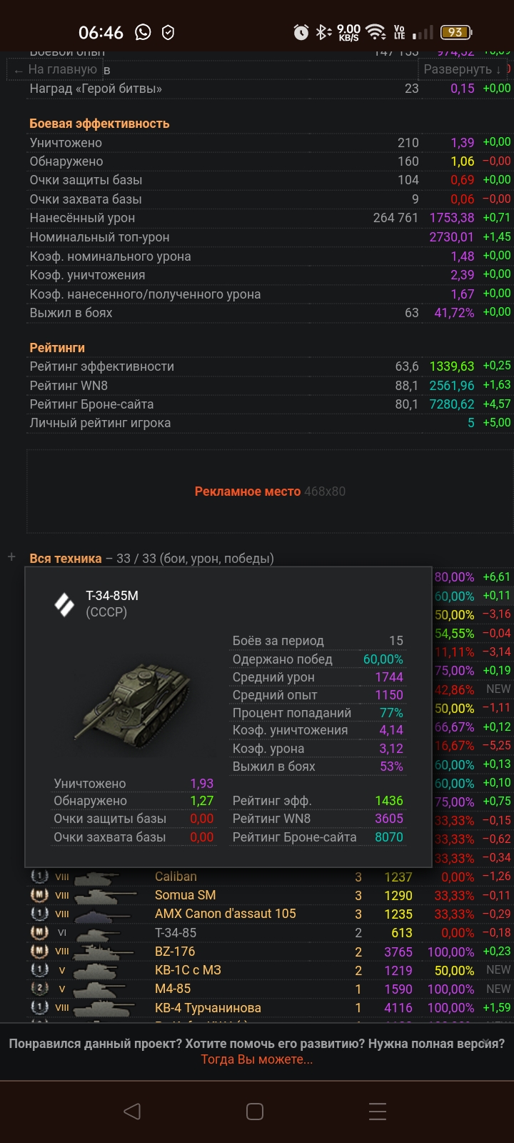 ser1945 Опубликовано: 12 февраля, 2024 Игроки 75 публикаций 67 015 боёв Жалоба Поделиться Опубликовано: 12 февраля, 2024 (изменено) Сыграл 1 бой на основе на этом танке и сразу мастер. Загрузил на tankireplays. Думал может повезёт в каком ни будь конкурсе поучаствовать, а вот нет никаких ссылок на tankireplays на этот танк!!! Видать Леста и ВОТ не создали ссылку на этот танк! Вроде есть в списке на сортировку реплеев , но самих реплеев не, ни одного! Как так! Или ИГРОКИ НА НЕМ НЕ ИГРАЮТ? Изменено 12 февраля, 2024 пользователем ser1945 Ссылка на комментарий Поделиться на других сайтах Другие способы поделиться...