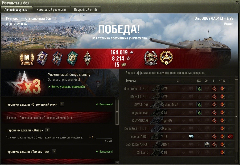 И спустя 8 часов, когда уже ложусь понял что провтыкал ещё момент. У тебя в бою было ещё 3 е25, и все с 400-600 урона, как думаешь подтверждает ли это мою правоту относительно эффективности е25?)