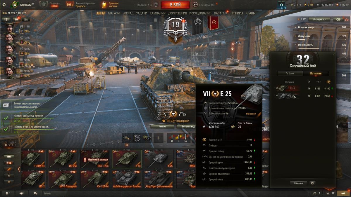 Что касается фарма. На базовых снарядах Е 25 играет очень хорошо. Настреливает первые 400ед. очень легко. А дальше играем по карте. Всё как на ЛТ или СТ. Ничего сложного.