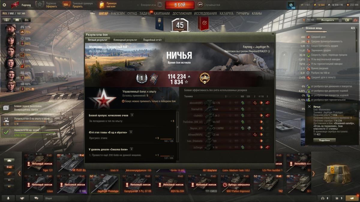 Конечно ужасный бой, глянул на сетап и на раскатку союзников-думал слив, поэтому на горку неспешил ехать. ИС-6 и 112 поперлись туда и в ангар улетели, один с нулем урона, второй с одной тычкой. Всего то пару раз выстрелил, немного недосведясь-какие вертуханы? В этом бою грунтозацепы неособо нужны были, но придвидить этого еще до боя нельзя было. У яги самая большая проблема, это подвижность, очень часто нехватает именно скорости поворота, что бы развернуться и дать тычку противнику. Бывают ситуации в бою, когда неможешь пробить танк противника даже на голде, вот тогда можно и фугасами покидать, хотя бы по 100-200 хп поснимать за выстрел. БК позволяет возить много фугасов. Блайндить в этом бою было некуда, важнее было держать заряженный ствол, что бы контролить выезд противника. Незнаю на счет китайской пт, кому она вообще может нравиться, считаю ее ужаснейшим аппаратом, УВН -6, сведение убитое наглухо, хп нет, брони нет. Из всех кустовых пт 8, китаец самый ужасный.  Какая оборудка нужна яге по твоему мнению? Раньше катал с другой сборкой и это было очень ужасно)))