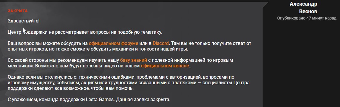 Любопытно, ЦПП теперь не дает ответов по игровой механике: