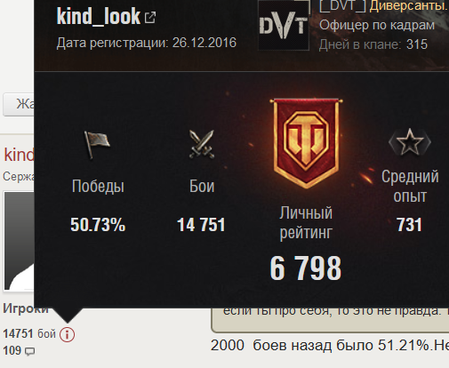 _C_E_H_O_K_O_C_ Опубликовано: 15 января, 2024 Игроки 50 991 публикация 57 657 боёв Поделиться Опубликовано: 15 января, 2024 15 янв 2024 - 13:27 пользователь kind_look сказал:Открой сезонную статистику от лесты, или мир танков ,веди ник и посмотри.5/12 это пример .Что тут плохого если я хочу побеждать в игре. все уже открыли. 5/12 уже пример, раньше было "и так каждый раз". Хочешь побеждать чаще, учись играть. у тебя и так 50% сойдет. Подкрутка головного мозга - это серьезно Ссылка на комментарий